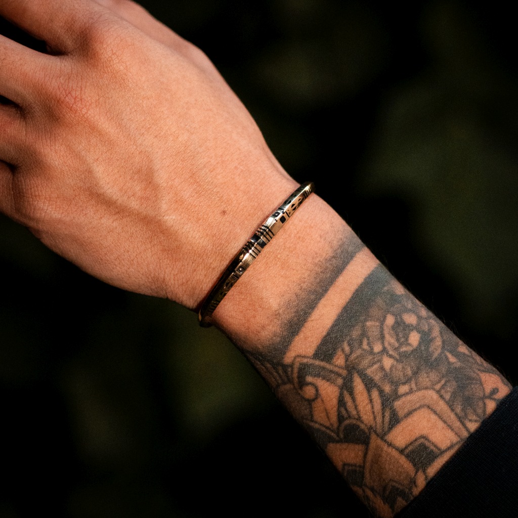 El Brazalete Freydis es una joya étnica con carácter distintivo. Inspirado en la tradición bereber y la vikinga, este brazalete abierto está fabricado en latón de alta calidad y presenta un cautivador color dorado natural. Su banda está adornada con grabados tribales y detalles oscuros que realzan su estilo boho chic y vintage. Es fácil de ajustar y cómodo para el día a día. Es ideal para el stacking o para lucir como pieza central, convirtiéndolo en un accesorio de moda único y versátil para tu colección de joyería plateada o dorada.