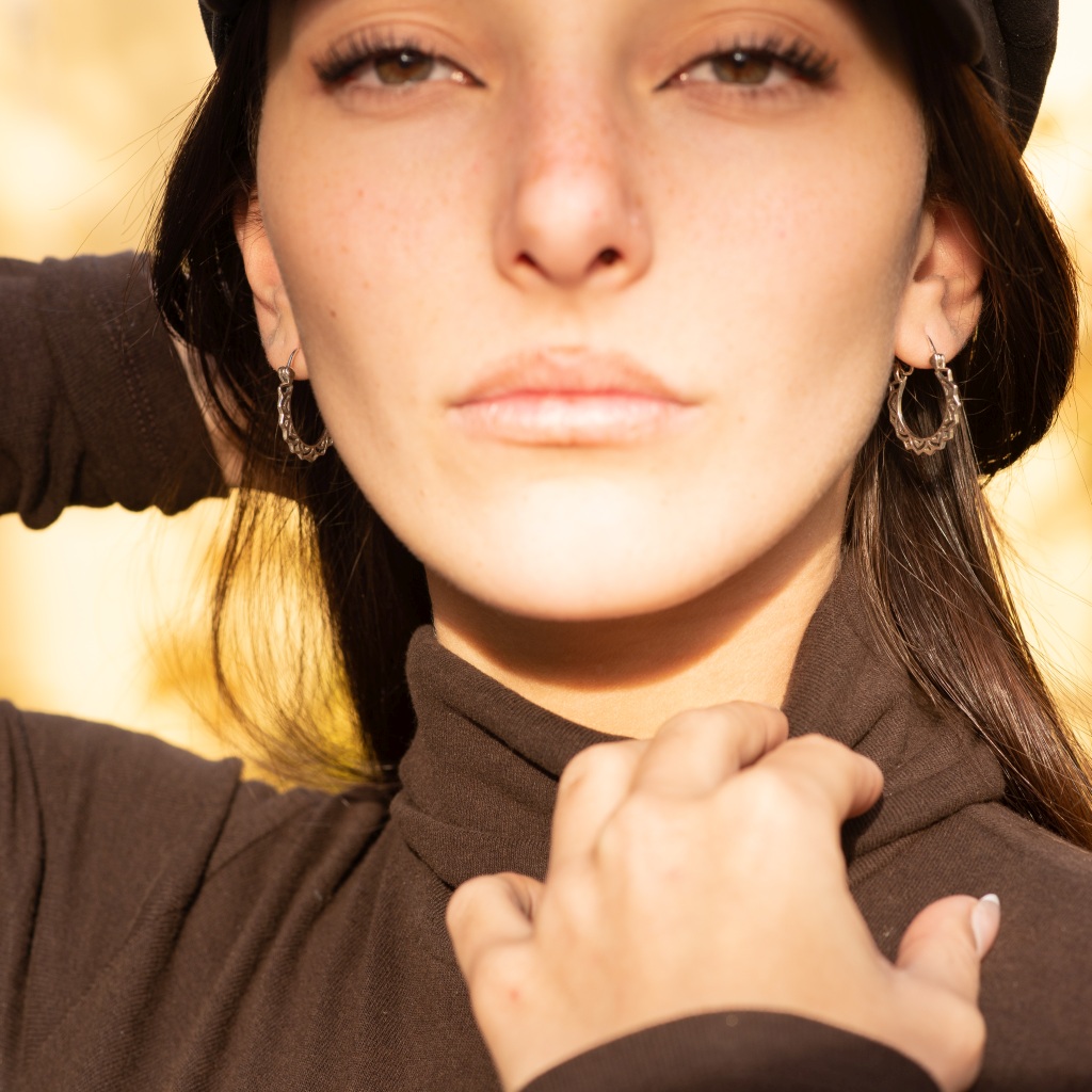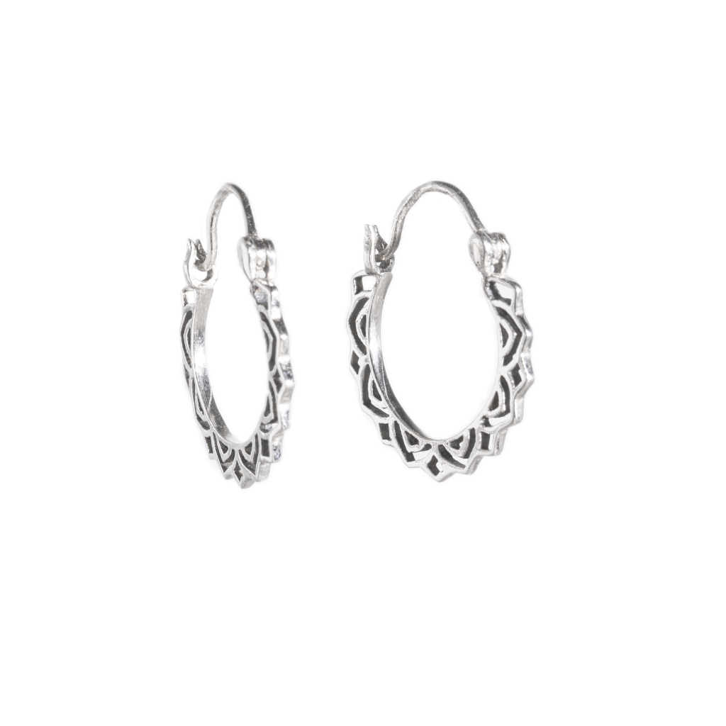 Los aros Yule en plata de ley 925 celebran la precisión y la belleza de la geometría. Su diseño se basa en una forma de aro cerrado con un borde exterior calado de **patrón repetitivo** que recuerda a un mandala o una flor de ocho puntas. La estructura de patrón geométrico y la plata brillante confieren a la pieza una **elegancia sutil** y un **carácter bien definido**. Estos aros son una pieza clave que complementa tu look con simbolismo geométrico. Los Aros Yule son perfectos para llevarlos en cualquier ocasión, y son **compatibles con otras piezas** para un **styling personalizado**.